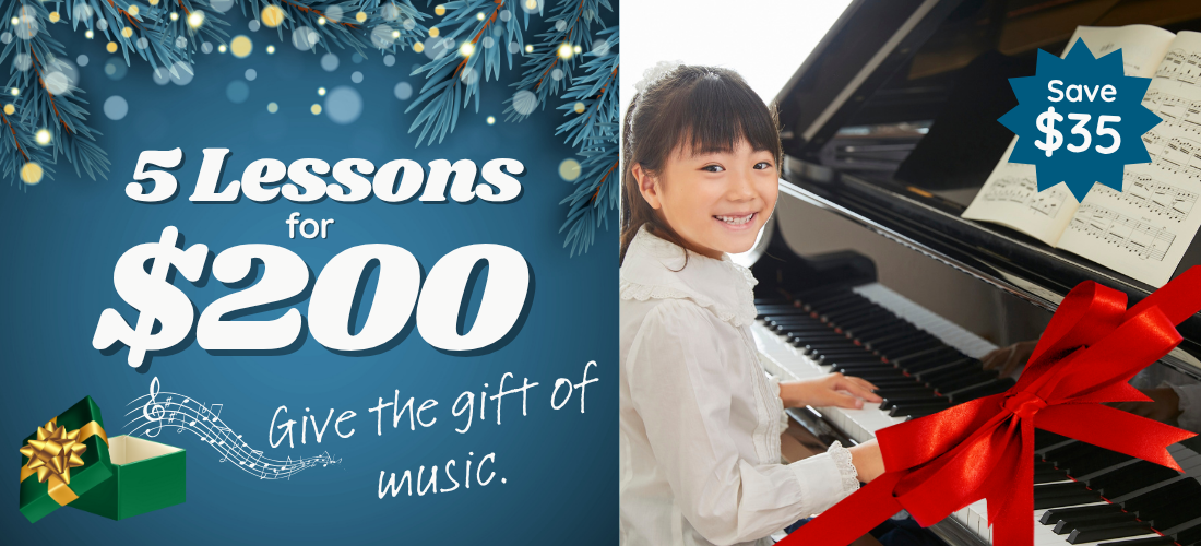 Terms and Conditions: Offer available only to new students or existing students starting a new instrument. Regular price: $45/30-minute lesson plus $15 registration fee. Limit 1 package per recipient. Limit 4 packages per order/payer. Lessons must be scheduled by June 1st, 2026. Not redeemable for cash or store credit. Recipient must agree to Elefante Music’s lesson policies. Offer expires December 23rd, 2025.